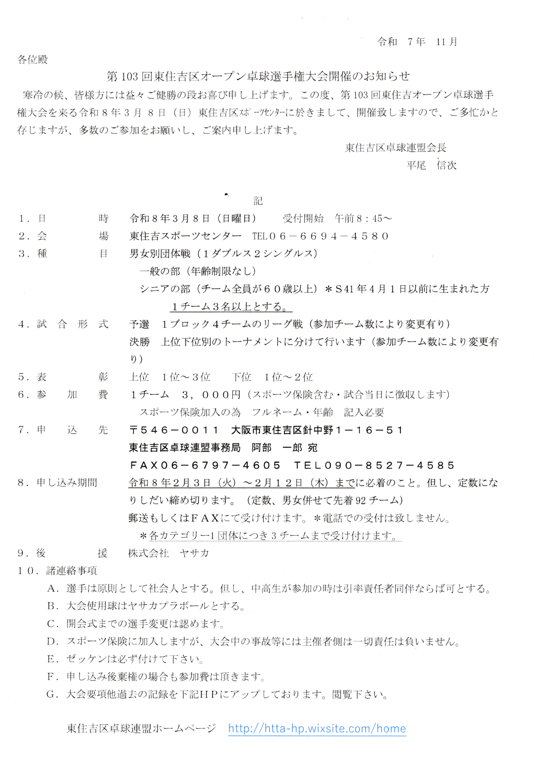 2026年1月9日 / 最終更新日時 : 2026年1月9日 wakasugi 大会予定 東住吉区オープン卓球大会 男女別団体戦 令和8年3月8日 FacebookX コメントを残す コメントをキャンセルメールアドレスが公開されることはありません。 ※ が付いている欄は必須項目ですコメント ※ 名前 ※ メール ※ サイト 次回のコメントで使用するためブラウザーに自分の名前、メールアドレス、サイトを保存する。 上に表示された文字を入力してください。